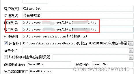生成列表文件还是在GameOfMir登录器生成器.exe中完成,点击最上面的远程列表按钮。