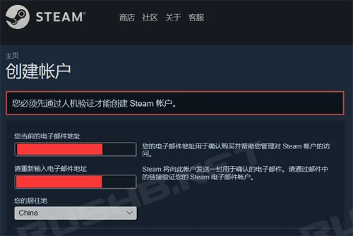 然后再Steam帐户(国服账号)注册页面便能显示人机身份验证,勾选完成验证,之后按照正常流程完成账号注册即可。