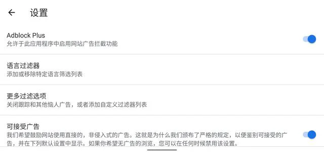 使用Adblock浏览器是的,Adblock Plus不单单有插件,官方还推出了针对Android平台的Adblock浏览器。