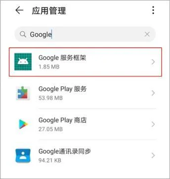 打开“设置”->“应用管理”-> “ ”->“显示系统进程”-> 搜索“Google”,如果找到有“Google服务框架”则说明有装;没有的话,可以自行安装(百度自行搜索:华为mate30/mate30pro安装谷歌框架新方法),这个方案除了mate30系列,也适用于其他型号的华为手机。