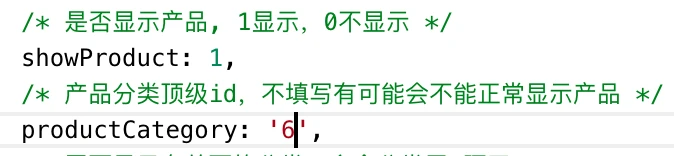 如果织梦站点使用文章模块来管理产品,则还需要设置productCategory的值为产品分类的顶级分类id。如图
