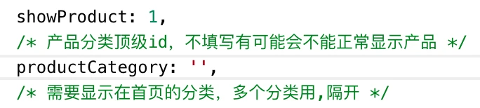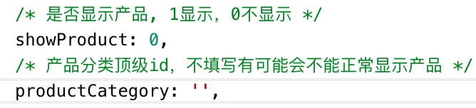 启用产品功能 将配置中的showProduct值设置为1,如果织梦站点使用商品模块来管理产品,则productCategory不需要设置,小程序会自动调用商品模块来获取产品分类和产品详情。如图