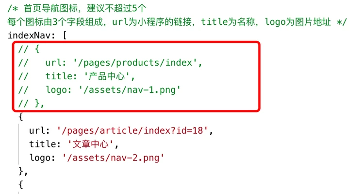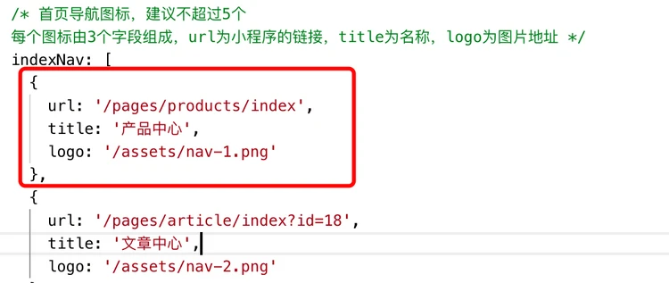 每个图标由3个字段组成,url为小程序的链接,title为名称,logo为图片地址,尽量使用网络图片地址。如图