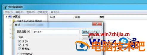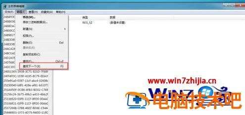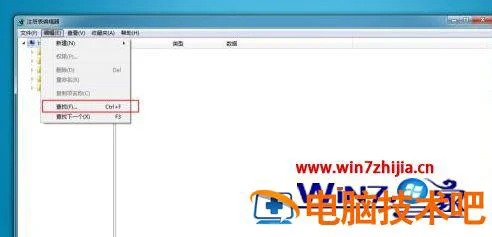 2、运行后进入注册表窗口,在菜单编辑中选择查找功能。
