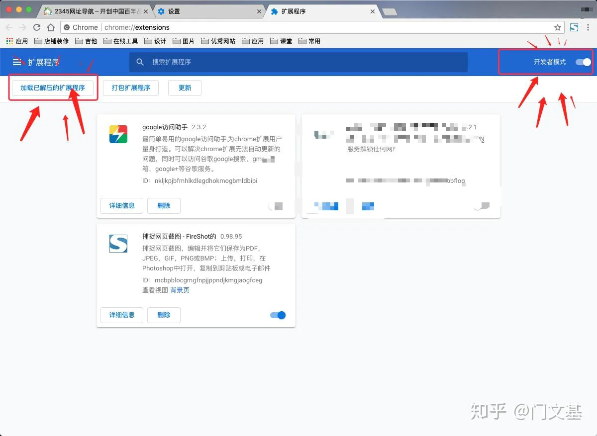 5.然后把 开发者模式打开 接着点击 加载已解压的扩展程序