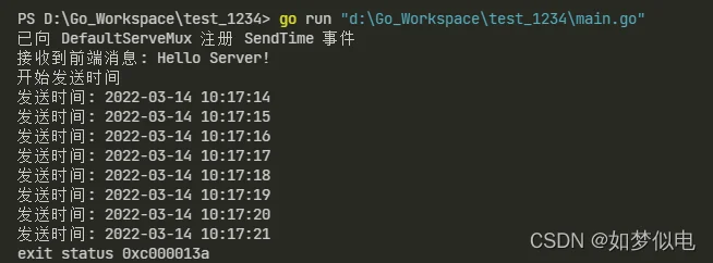 监听web发来的请求,升级为websocket通讯协议,发送打招呼信息,循环发送当前时间