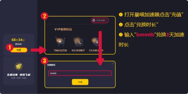 还有哦,通过下面的方法还可以兑 换暴喵加速时 长哦~