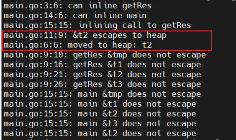 那么我们使用 go 提供的工具来看看这个程序是不是存在逃逸