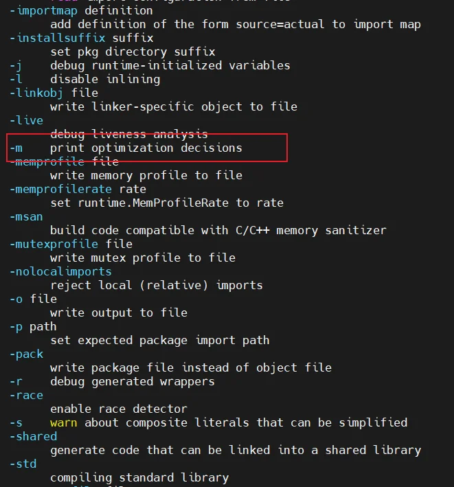 对于 go tool compile 工具,我们可以通过 help 命令来查看一下