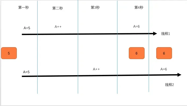 可以看到的是,A地址的数字被执行了两次自增,若A=5,我们在执行完成后预期的A值是7,但是在这种情况下我们得到的A却是6,bug了~