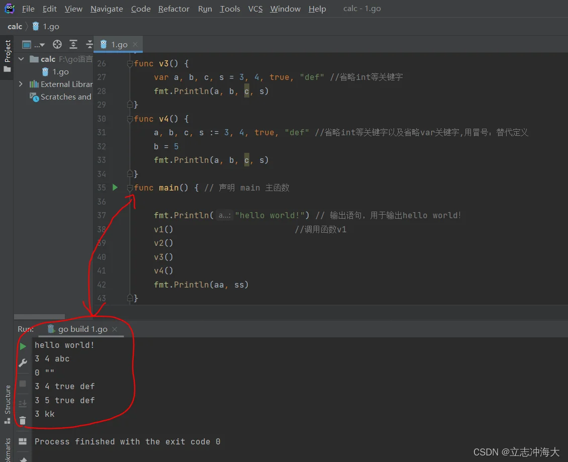 5.定义包内部变量(可以想象成为c语言的全局变量),是在函数外部定义的