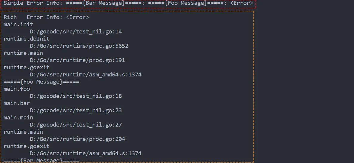 return errors.Wrap(ERROR, "====={Foo Message}=====")