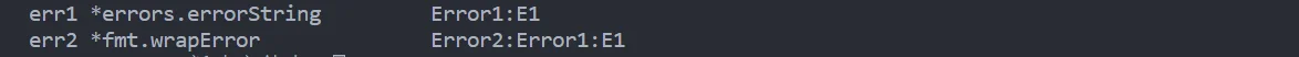 err1 := fmt.Errorf("Error1:E1") //返回一个错误