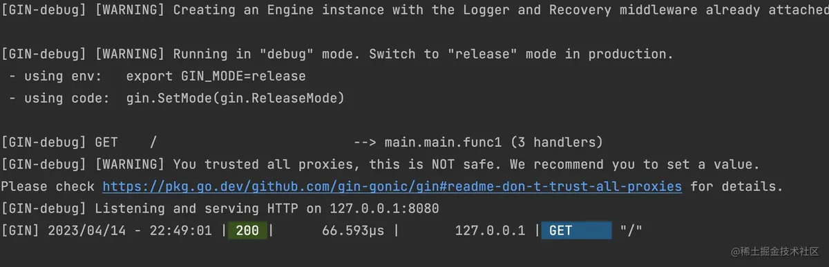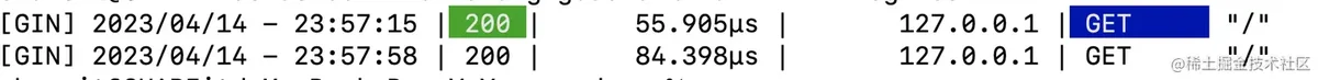 当我们在终端上(比如Goland)运行gin框架搭建的服务时,会发现输出的日志是可以带颜色的。比如下图中的最后一行,就是请求一个方法时的输出日志: