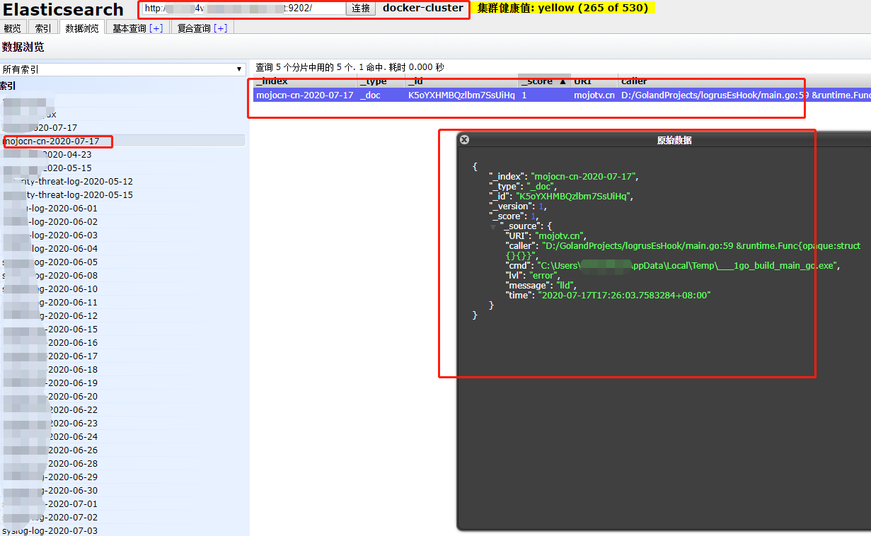 1.1 前期准备我们可以使用logrus( logrus 是一个非常容易扩展的golang 日志库 logrus使用教程 ) hook 快速的输出日志到Elastic Search 在使用Chrome Elastic Search GUI插件快速的定位你想用的日志.