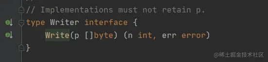 咱们只需要定义对象,去实现 Writer 接口 中的 Write(p []byte) (n int, err error) 方法就可以了