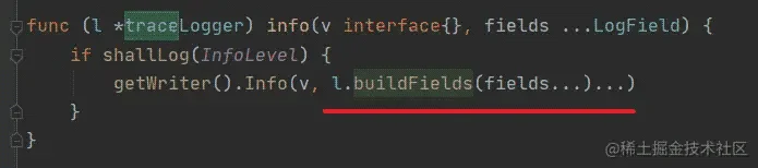 咱们稍微追一下代码,不难看出,是 traceLogger 内部的 info 函数进行日志信息的拼接