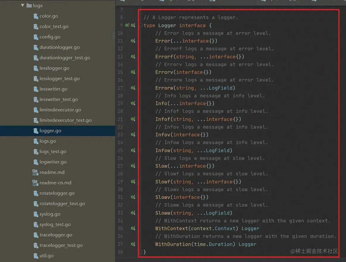 实际上我们可以看到在 logx 源码中,其实有很多文件都已经根据自己的使用情况去实现了上述 Logger 接口