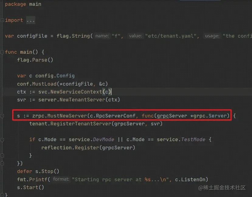 可以看到在 tenant.go 的文件中,做的是服务的启动