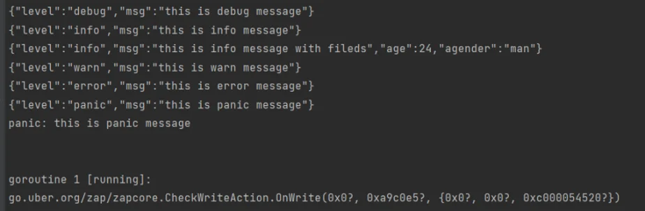 当然 会发现 我还加了一个值 zapcore.AddSync(os.Stdout))