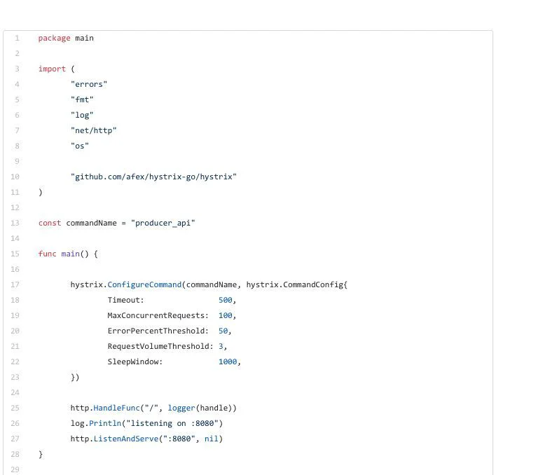 这个样例代码使用hystrix-go库,这是golang的hystrix Netflix库实现。