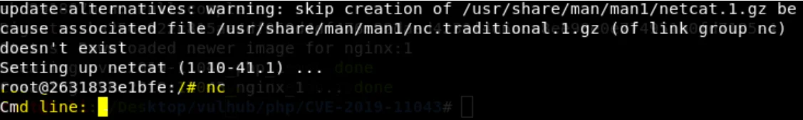 git clone https://github.com/vulhub/vulhub.gitcd vulhub/PHP/CVE-2019-11043 && docker-compose up -d