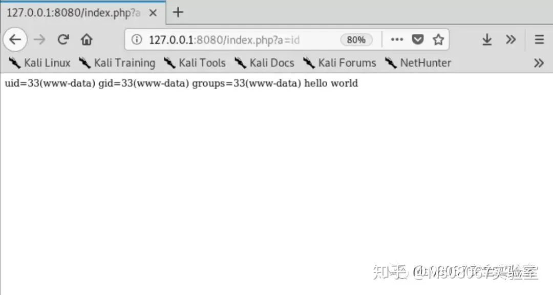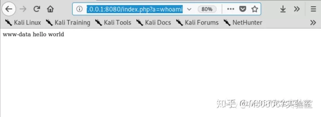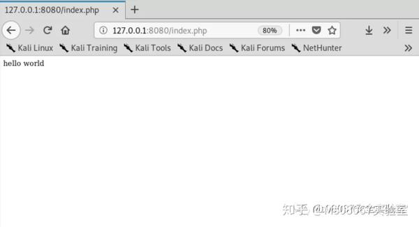 启动环境之后,就可以看到漏洞环境的默认页面。在此为 http://127.0.0.1:8080/index.php。