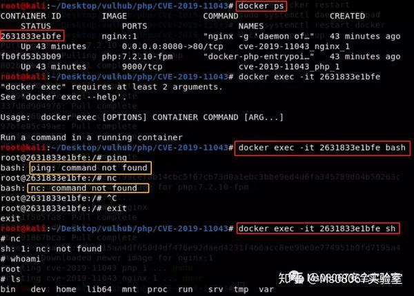 但是继续观察,可能是镜像不对。因为p牛封装的这个环境有两个 docker,刚刚都是在 nginx docker 镜像里面尝试的: