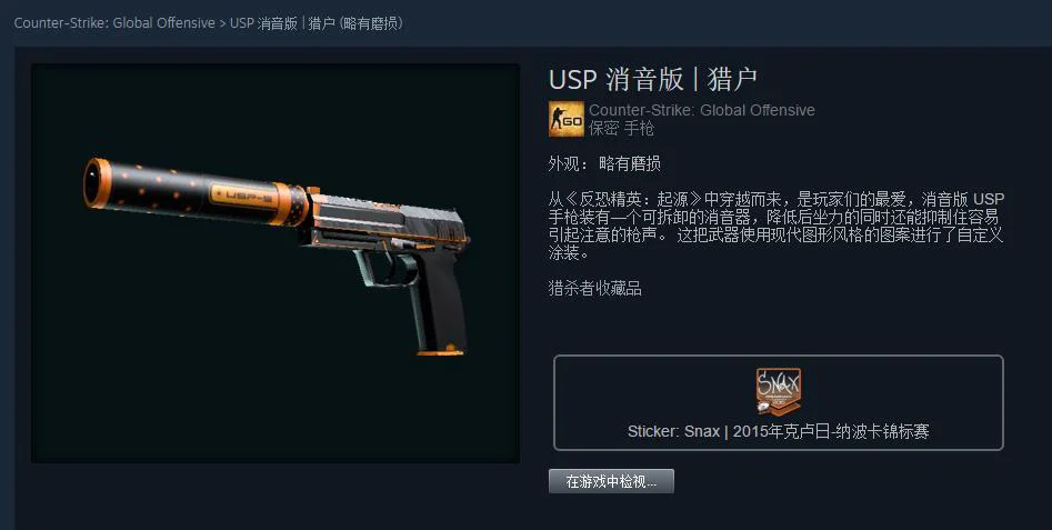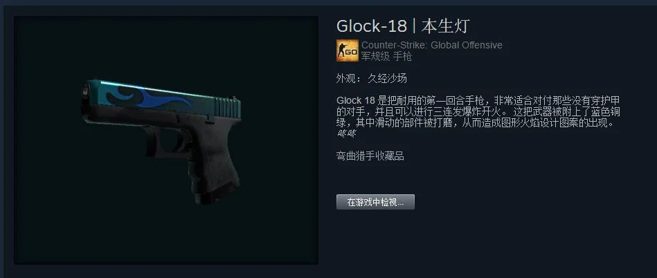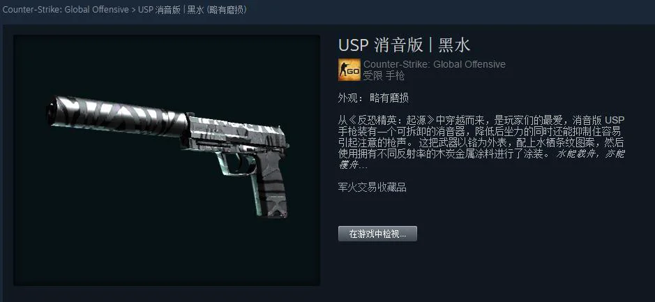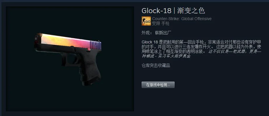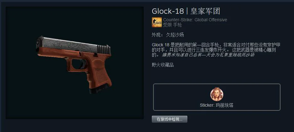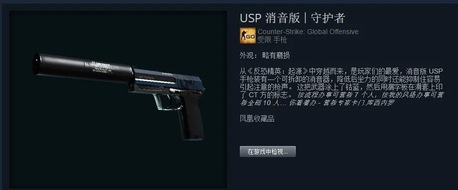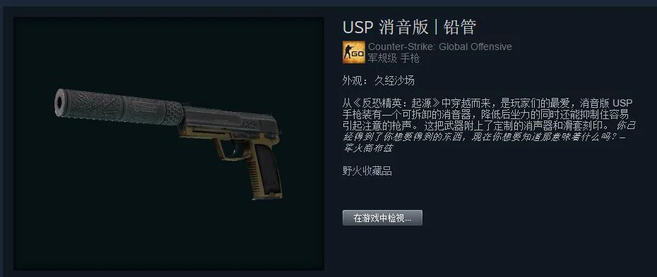 特点就是不是特别吃磨损,但是枪口枪管的地方磨损还是很容易看出来的,世界级的这个往往可以卖出200+人民币的高价,其实炒作并不好,但是鉴于这把枪物美价廉,在隐秘级别的武器里面,也是相当出彩的。