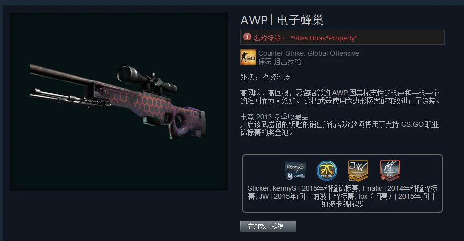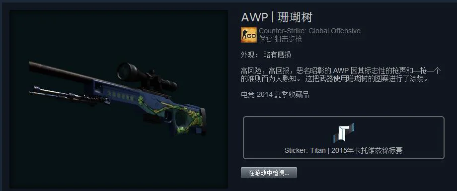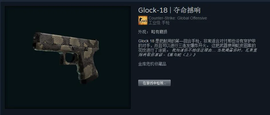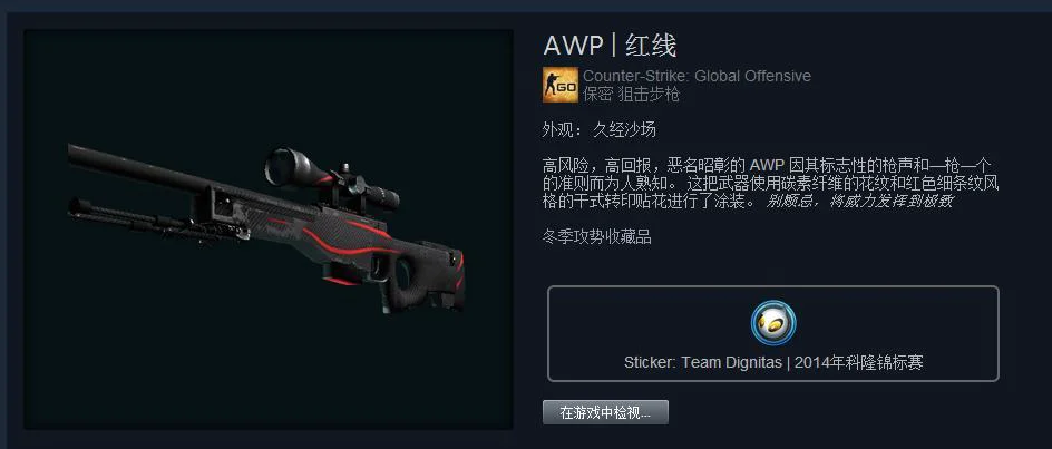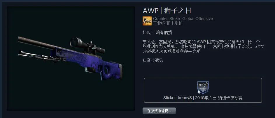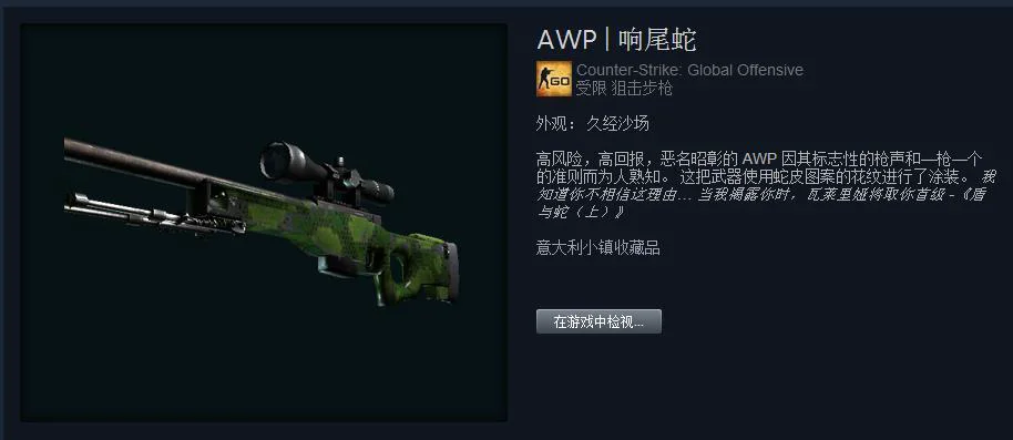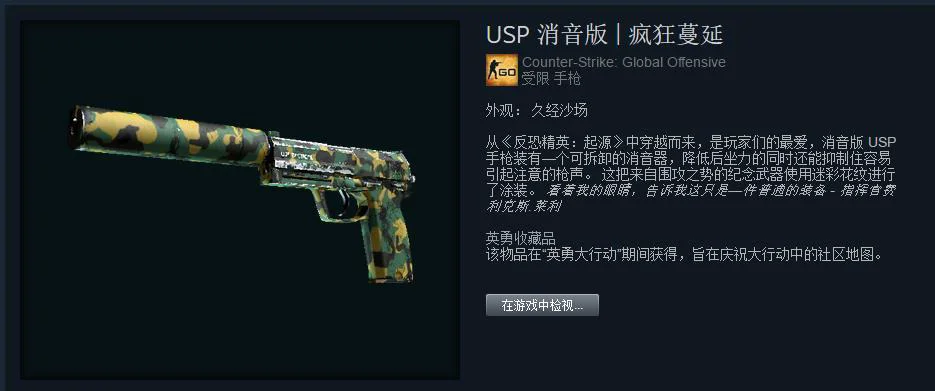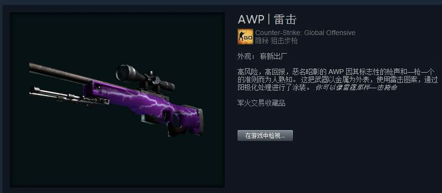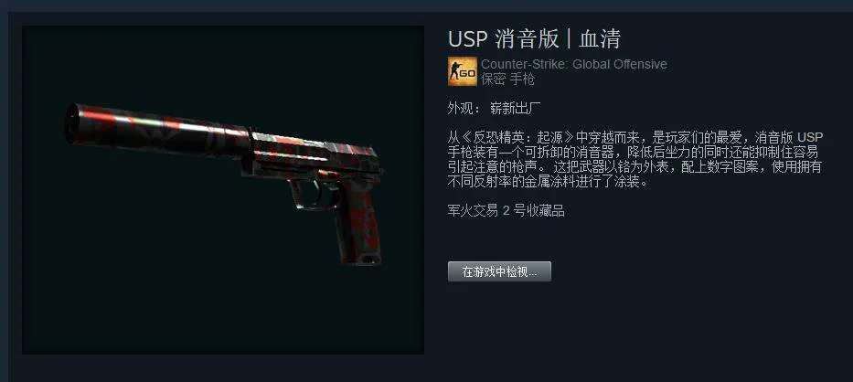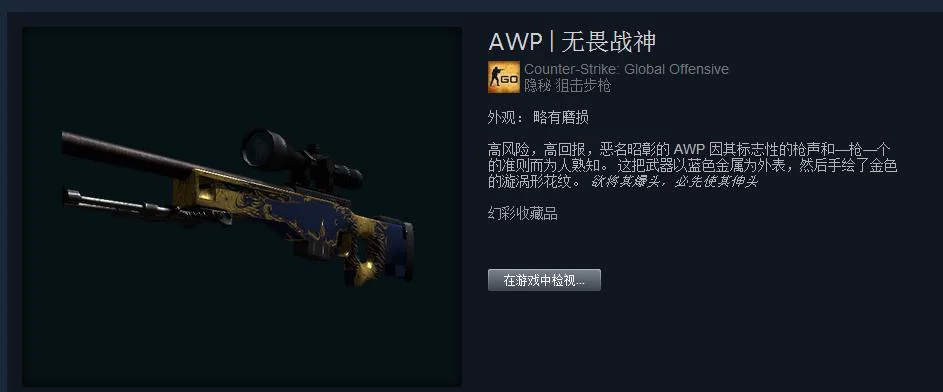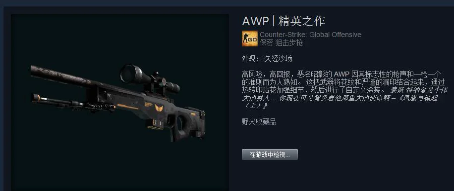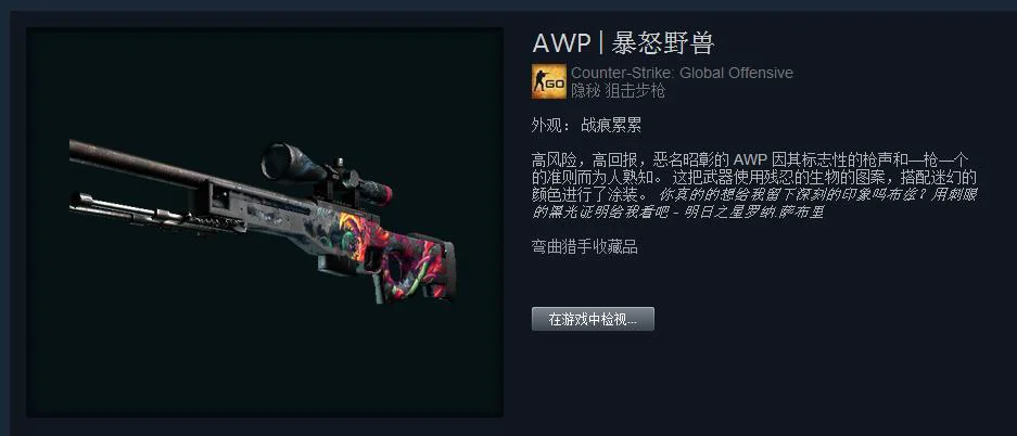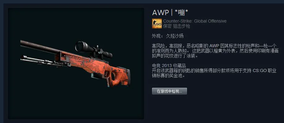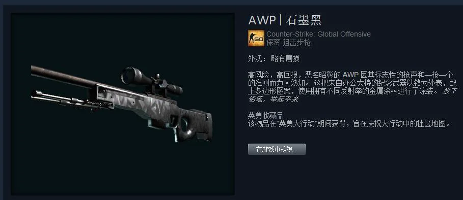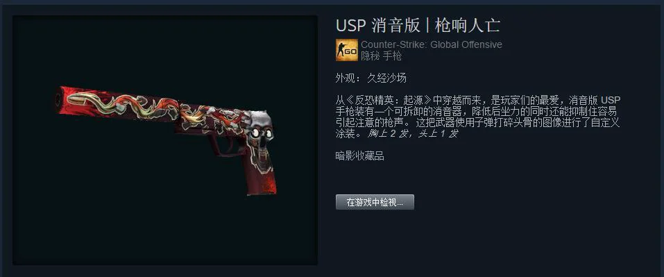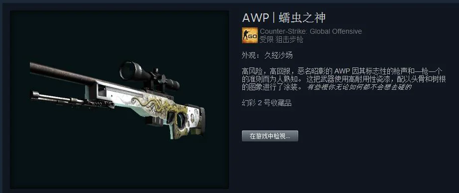 这款皮肤是整个CSGO的第二皮肤,第一是巨龙传说龙狙,