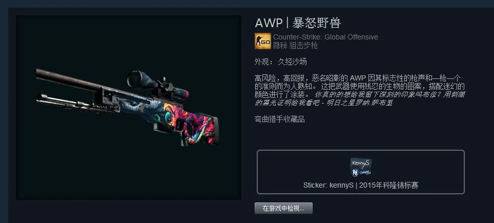 这时CSGO史上唯一一款单独分级的皮肤,说起这款皮肤的时候,就会有咆哮声呼之欲出。