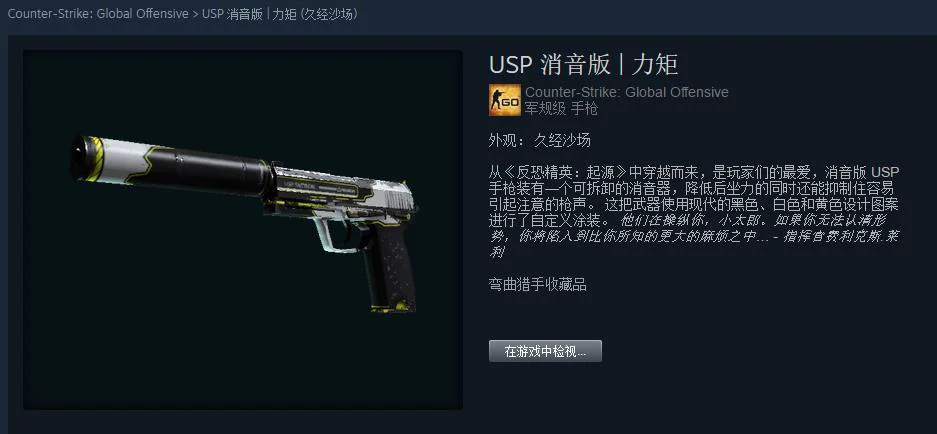 原本精英之作是不错的一款皮肤,主要就是因为上面的花纹很有现代的军事感觉,而且每一把精英之作上面的花纹都很细腻,非常完美,但是随着市面上货量越来越大,价格也便宜了下来,可以说是物美价廉的一款皮肤,整体来说花纹非常出色,有现代感,而且黑黄色的设计我觉得非常酷,配上什么贴纸都很好看,而且根本不吃磨损,一般来说选择久经成色的就非常完美了,略磨的价格也丝毫不贵,我现在仓库里还有一把暗金成色的(也就是说带一个计数器,可以记录你杀敌的个数,会贵一些)。