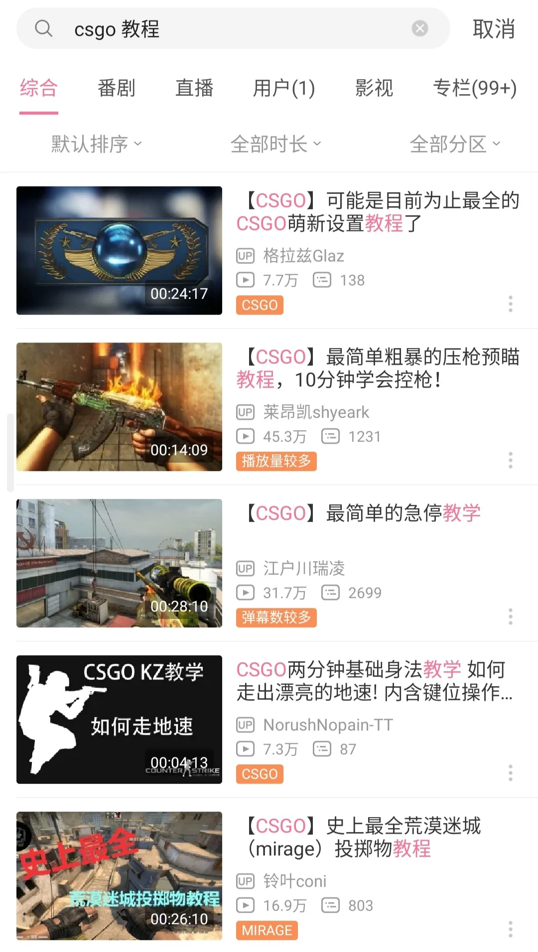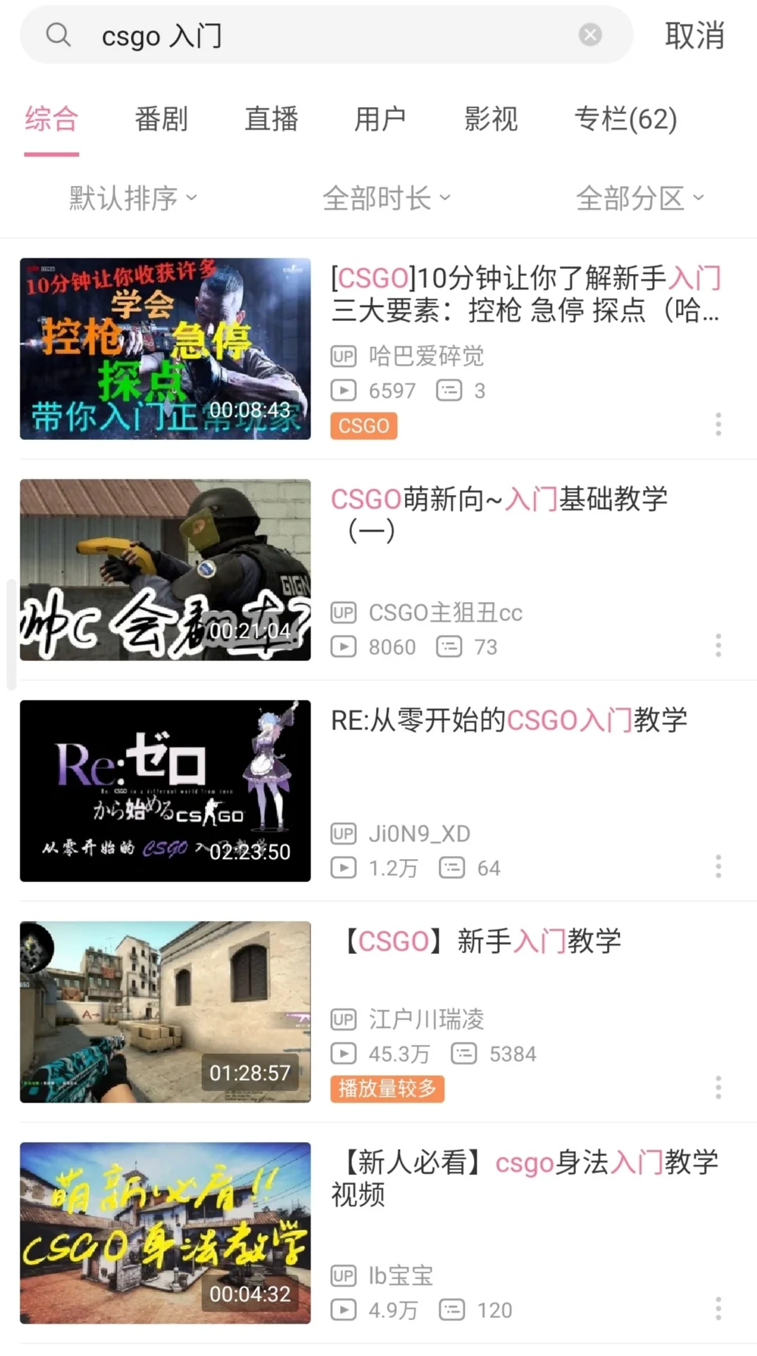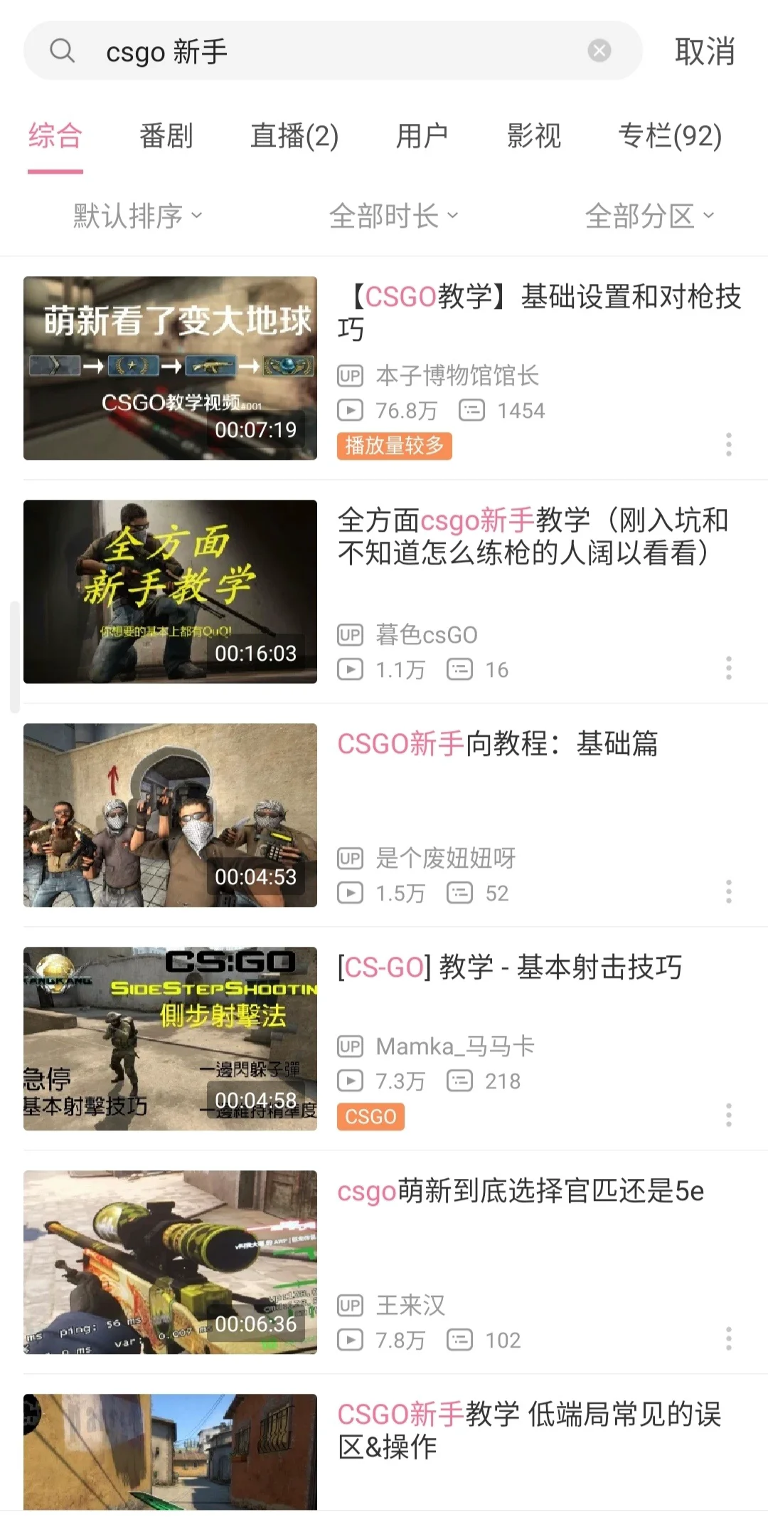哔哩哔哩里有大量CSGO视频,直接用csgo加各种关键词,比如游戏里的武器和道具名字搜索即可。