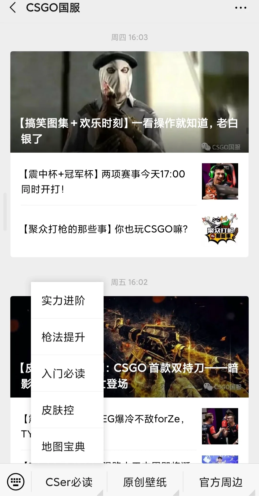 这是国服的官方公众号,关注后点击CSer必读——入门必读即可。