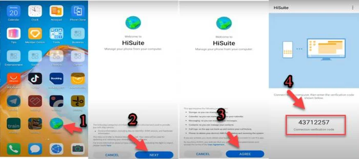 - HiSuite => Next => Agree.