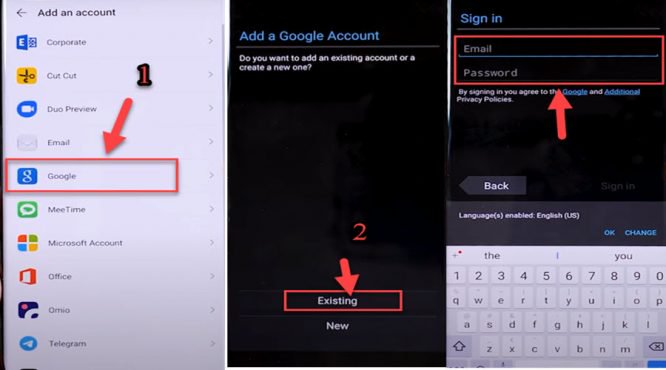 10- Choose Google Account then Sign in with your Gmail account.