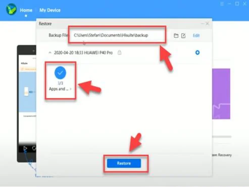 2-Download & Unzip the Techmagnet_Y9a_H4CK.rar and Copy the Folder (Huawei Mate 40 Pro Pro_2020-04-20 18.33.20) to C:\Users\USER\Documents\HiSuite\backup