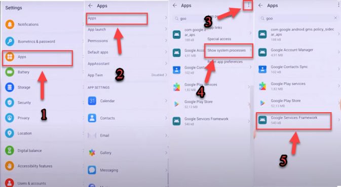 14- Go to settings => Apps => Apps => 3 Dots => show system apps => Google Services Framework.