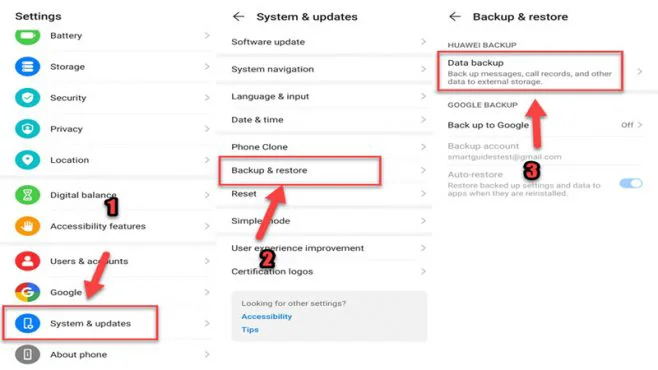 - Settings => System & updates => Backup & restore => Data backup.