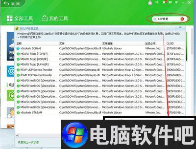 c、有安装360安全卫士的小伙伴可以搜索LSP修复工具进行一键修复;