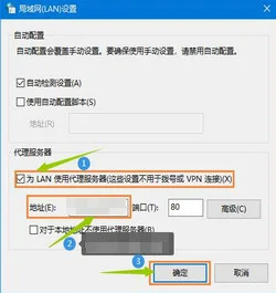 在局域网设置界面勾选lan使用代理服务器并输入地址,点击确定按钮