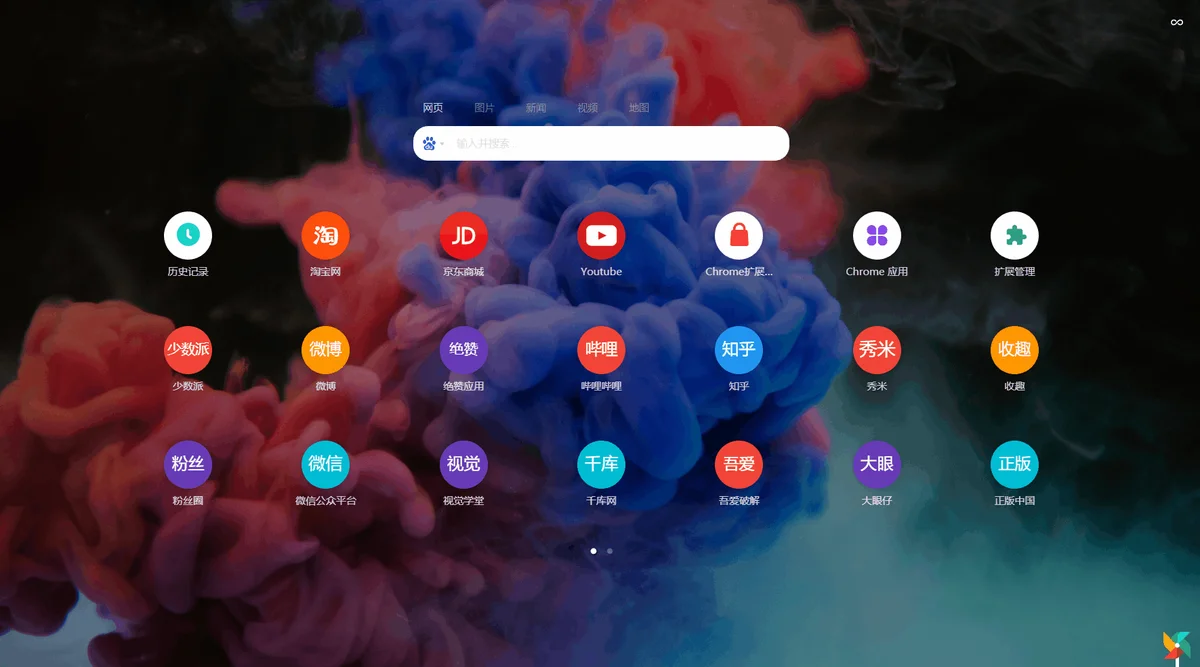 如果你觉得它界面不美观,使用不方便,去了解一下这款扩展插件,Infinity新标签页。安装设置完成,你的谷歌马上就会变成这样,或者任何你想要的模样,只需要在这里自定义就可以了。