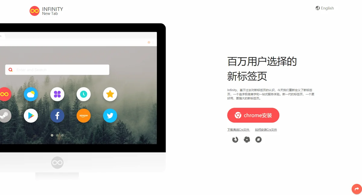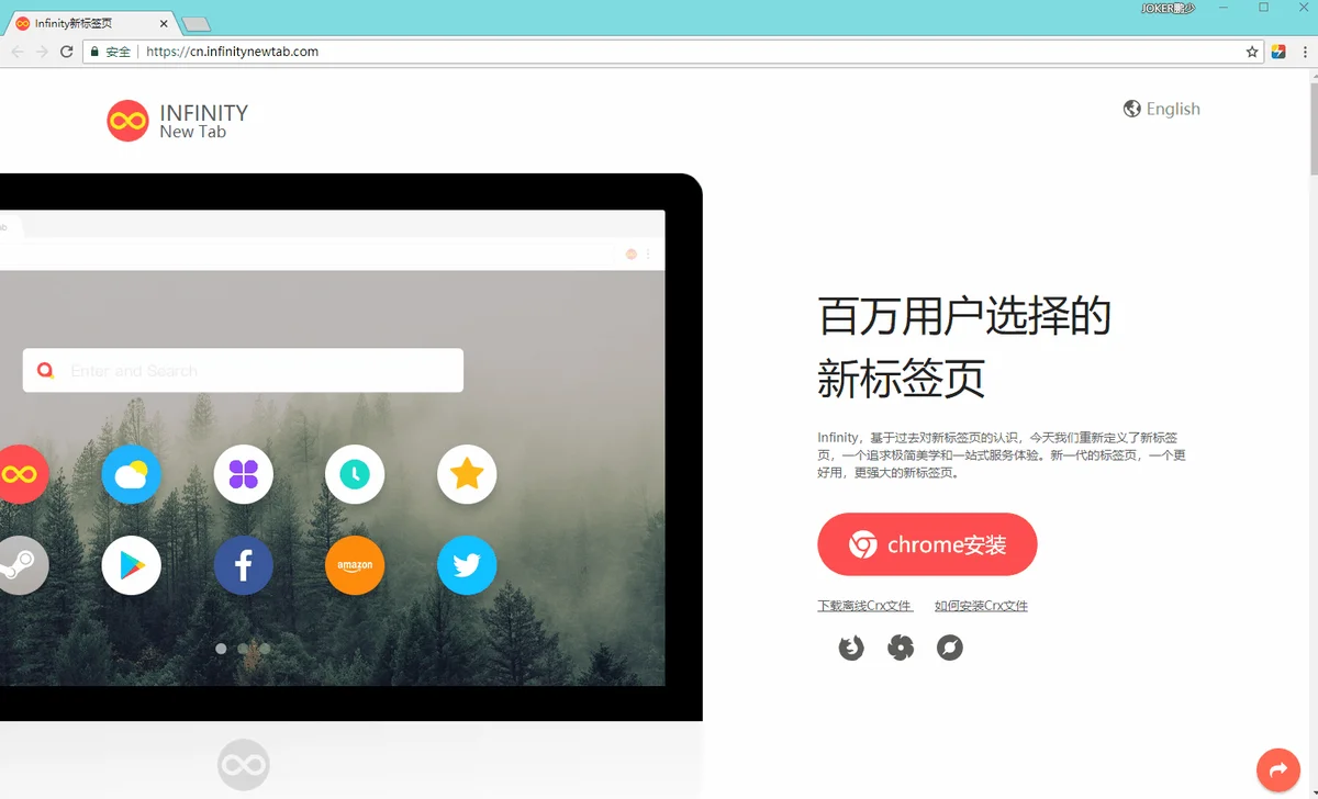 第一种,直接在官网进行添加,比如Infinity新标签页,我们可以点击chrome添加,它会直接跳转到谷歌应用商店进行安装,但前提是你一定要有访问谷歌商店的权限。