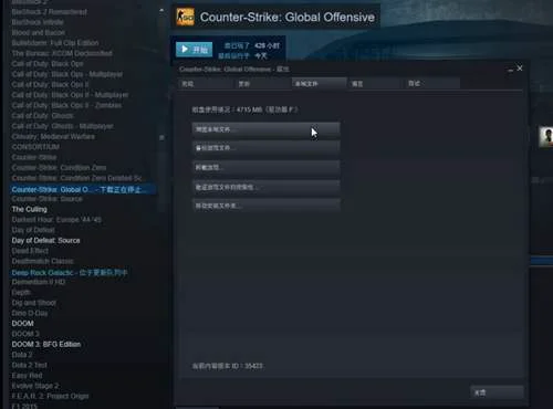 下载完之后用steam运行会显示文件校验失败 还是右键CSGO标题 选择本地文件“浏览本地文件”