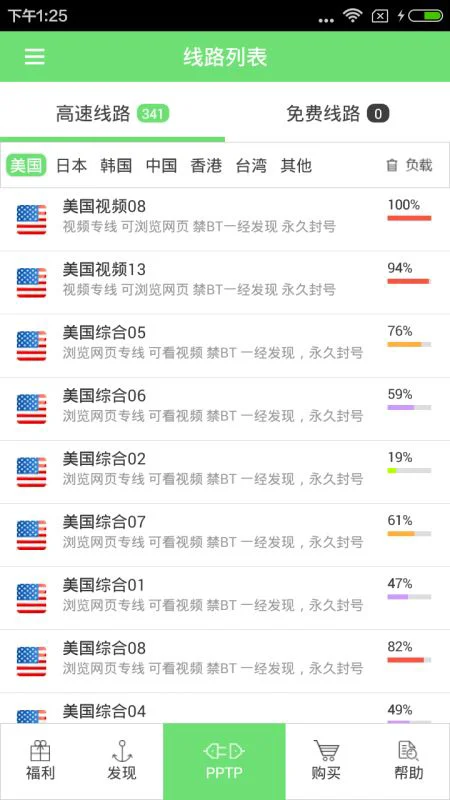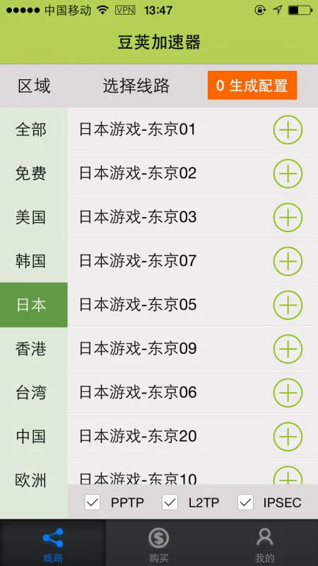 之后需要选择几个线路添加,全部选择日本线路,这里推荐日本东京12号线路,比较稳定,亲测可以进入游戏;