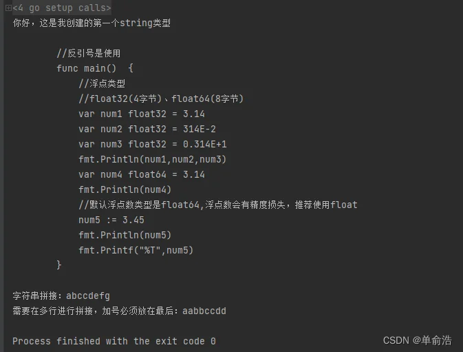//默认浮点数类型是float64,浮点数会有精度损失,推荐使用float