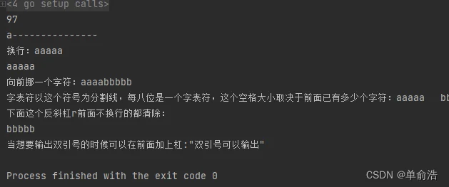 fmt.Println("向前挪一个字符:aaaaa\bbbbbb")