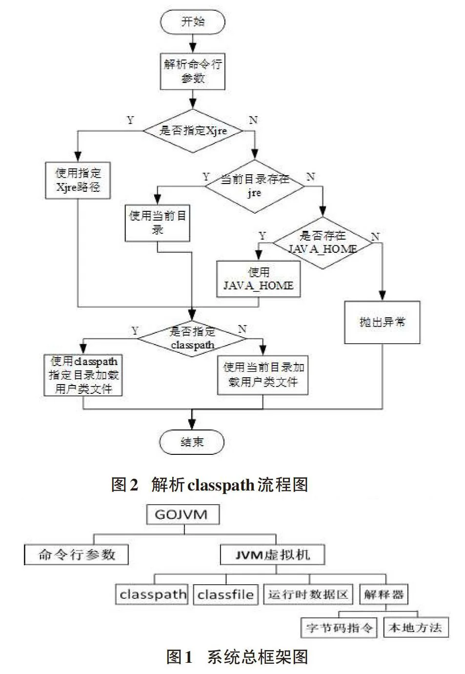 GOJVM虚拟机根据功能需要分为命令行参数和JVM虚拟机两大模块,具体的各个功能模块如图1所示。
