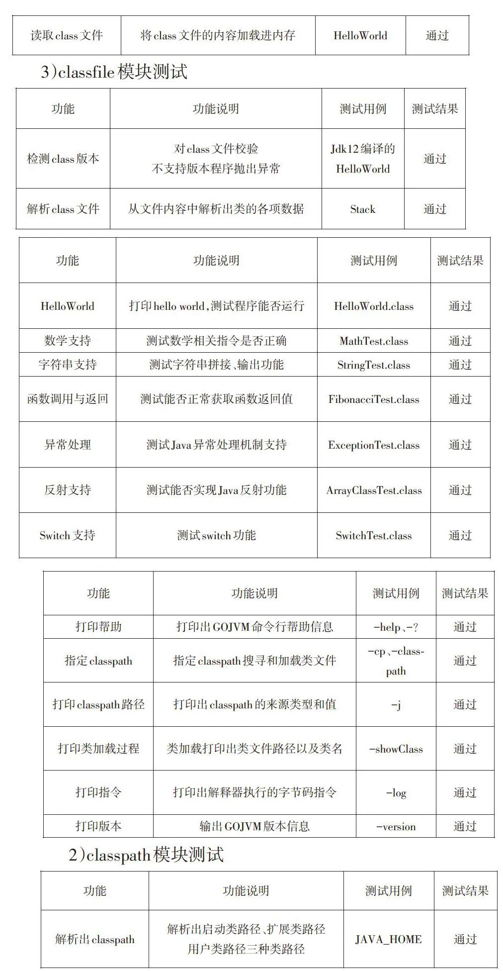 [功能 功能说明 测试用例 测试结果 解析出classpath 解析出启动类路径、扩展类路径