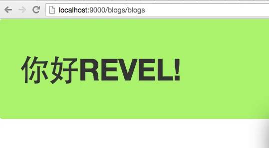 这次不用重启服务了。对于路由、controller和view的修改是不用重启服务的。Revel支持hot-reload。修改后的内容都会自动重新编译。刷新浏览器。